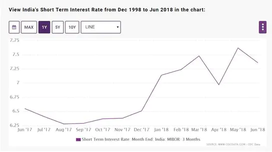 根据CEIC绘制的图表可见,2017年底至2018年以来,印度的短期利率不断攀升,这对负债端借款占大头的IL&FS而言,无疑是重大的打击