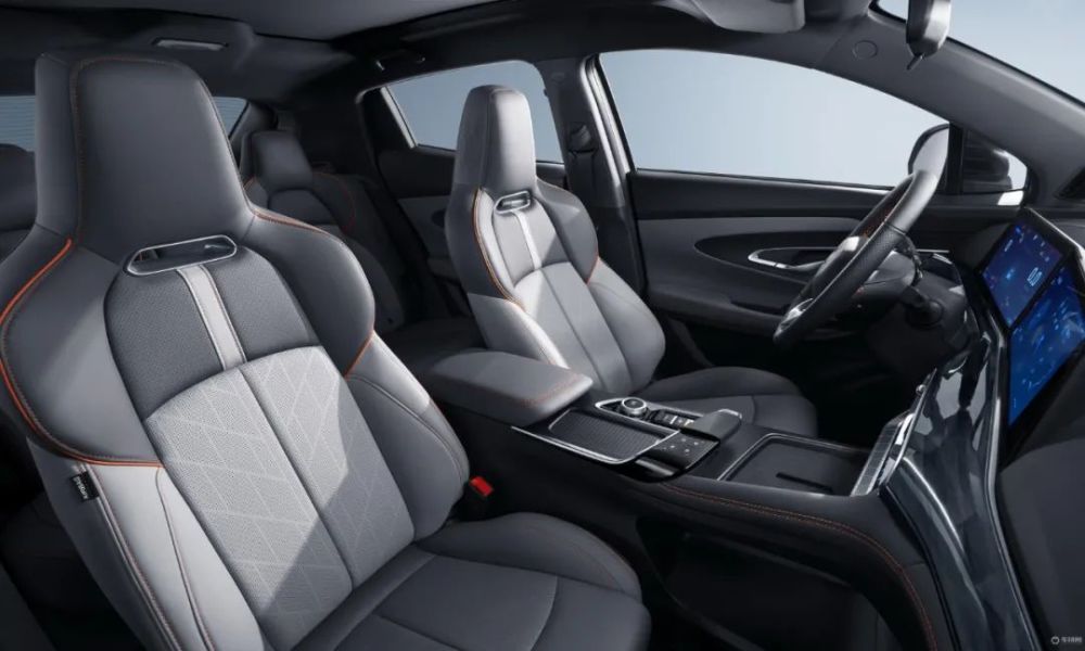 内饰方面新车的中控表面采用了金属交叉拉丝面板,与黑色(带橙色缝线)与浅灰色两种色系内饰相搭配。新车的座椅表面采用科技风格打孔图案,头枕与腿托采用了类似Alcantara材质。新款车型对双12.3英寸双联屏进行升级,并配备FACE ID和超级账号刷脸功能。