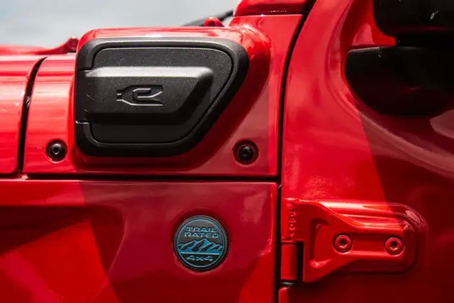 很多人会担心增加了电力驱动系统的牧马人4xe,如果碰到涉水安全不安全。我认为完全没有担心的必要,首先,牧马人4xe有760毫米的最大涉水深度,可以让整个车轮泡在水里。电机和电池包是经过严苛的防水测试的,充电口也设置在了左前后视镜的前方,充分考虑到了涉水深度问题,所以,即便带了“电”,这辆牧马人4xe依然不会被水阻挡住。