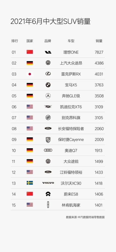 在几乎每月都要上涨一千辆的平均增幅下,7 月 12 日,中汽数据终端零售数据显示,理想 ONE 在 2021 年 6 月完成上险量 7827 辆,由于上险量代表着一辆车真实已经交付给消费者并且开始使用,因此在比较汽车销量数据中,也是最具含金量的一个。