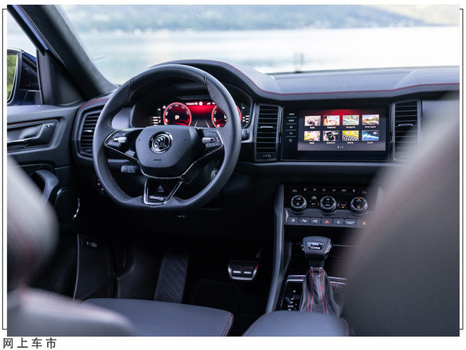 内饰方面,新车在柯迪亚克普通版的基础上新增了vRS套件,车内配备了有极具运动感的三幅多功能平底运动方向盘,部分区域还加入了碳纤维饰板。同时,新车内部大量使用了Alcantara材料,并配置有带红色缝线的翻毛皮赛车座椅。新车的配置方面,标配有全液晶数字仪表、9.2英寸中控触摸屏,并且支持Apple CarPlay和Android Auto系统。在安全配置上,全新柯迪亚克vRS还标配有停车辅助、后视摄像头、自动紧急制动和自适应巡航系统,大幅提升了驾驶感受。