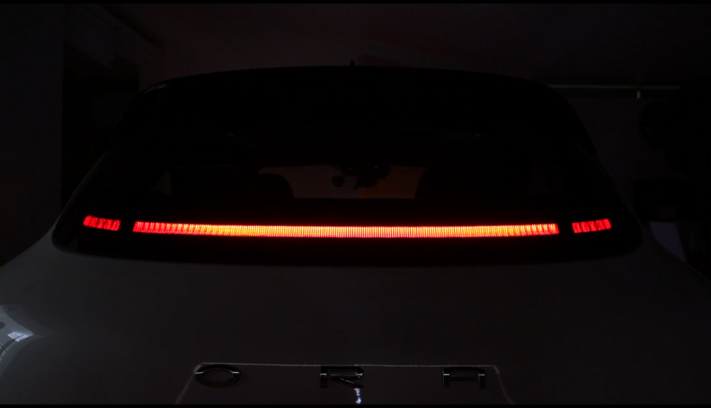欧拉好猫车尾最具个性的当属尾灯设计,官方称之为“流水光幕”,一条弧形LED灯带平时隐藏于后车窗玻璃下方,比较收敛,但当点亮之后其视觉辨识度则立刻拉满。