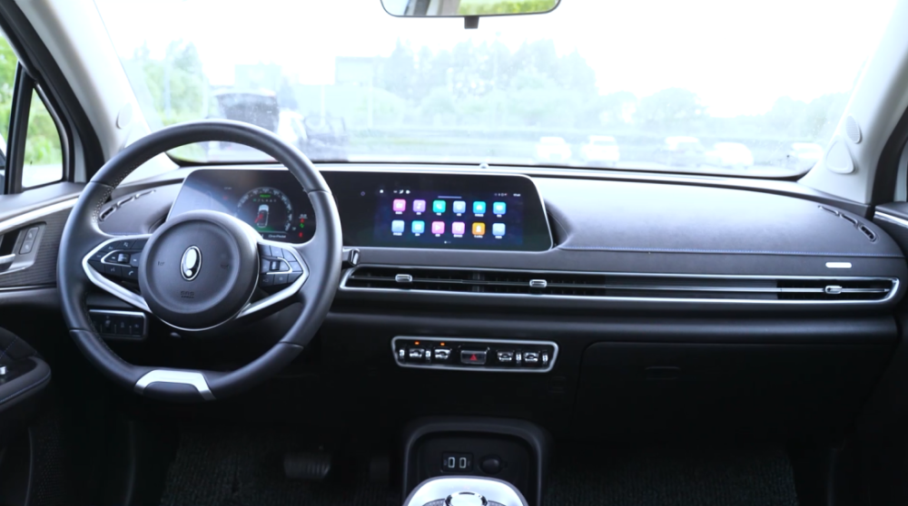 进入车内一眼看过去,相信这两款车的内饰高下立见。其中欧拉好猫将复古与现代科技很好地融合在一起,大面积软性材质、真皮和仿麂皮材质的运用,在一定程度上营造出车内的豪华氛围,中控台下方亮银色的拨杆,则又彰显上世纪的复古气息。