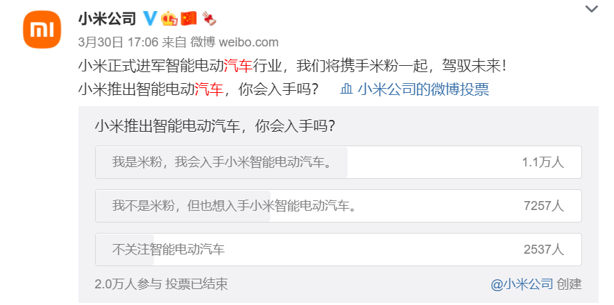 但是有意思的是,早在2020年12月份,网曝小米将携手比亚迪联合造年轻人的第一辆汽车——青悦S1,售价为84999元。而相对于雷军把小米汽车的定价选择10万-30万区间,更多的认为,小米手机之所以享誉全球,第一要素便是:高性价比。而对于小米汽车,很多网友十分期待,但表示价格一定要小米。显然,这要求小米必须要在竞争最为激烈的10-30万主力消费人群中,作出高性价比的产品。