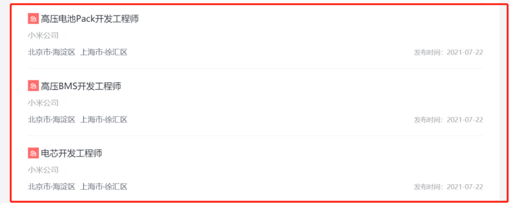 7月22日,小米公司在其官方网站上一口气公布了一百多条的职位启示,除了少量小米手机业务所需要的手机安卓系统开发工程之外,其余全都是汽车方面的。此前在5月时候,小米就曾经进行过招聘,但只是先招聘了一些在自动驾驶方面的人才,而此次招聘,不仅包括自动驾驶,智能座舱这种新型造车企业比较看重的板块,对车身、动力、NVH等多个板块的招聘也已经开始,这意味着小米造车已经正式拉开了序幕。