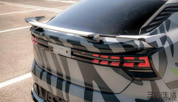 车尾部分配备大尺寸固定式扰流板,则尾灯组部分采用矩形列阵式的设计,后包围的造型与前包围相呼应。整体设计搭配小尺寸尾部扩散器,以及双边共四出的排气布局,运动感拉满。