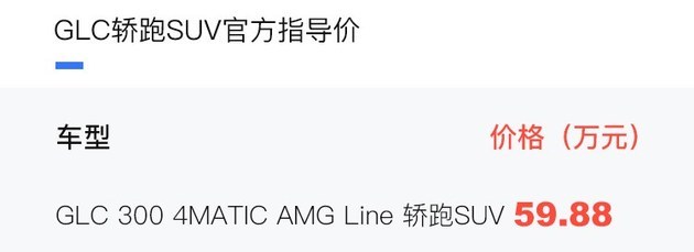 易车讯日前,我们从相关渠道获悉,奔驰GLC轿跑SUV新增一款GLC 300 4MATIC AMG Line车型,售价59.88万元,新车主要是增加了AMG-Line套件。