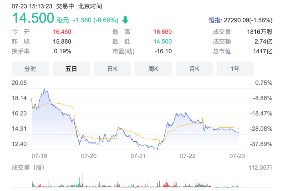 经过连续多日股价持续下跌后,恒大汽车股价终于在FF上市后大幅上涨。截至当日收盘,涨幅达20.3%,股价为15.88港元/股。