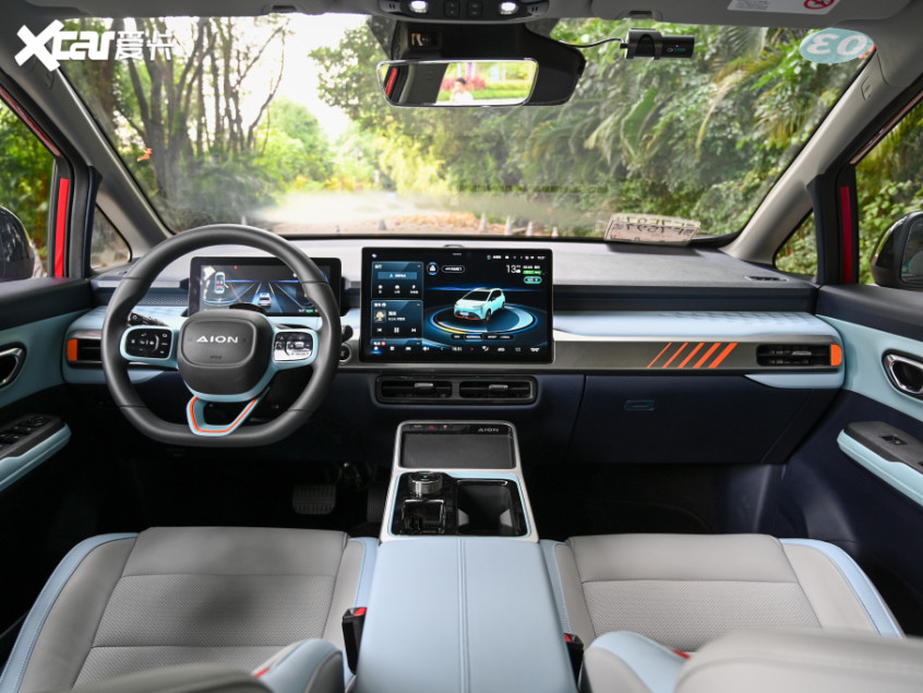 走进车内,AION Y采用了极简的内饰设计风格,并运用了大量圆角矩形作为设计元素,配合多处运用的橙色元素,进一步增强了车内的年轻时尚化气息,而全液晶仪表盘配合14.6英寸中控屏更让AION Y的内饰看上去格外抢眼,特别是14.6英寸的中控屏显示效果十分清晰,车机系统的UI界面也清晰易读,操作起来非常便捷。