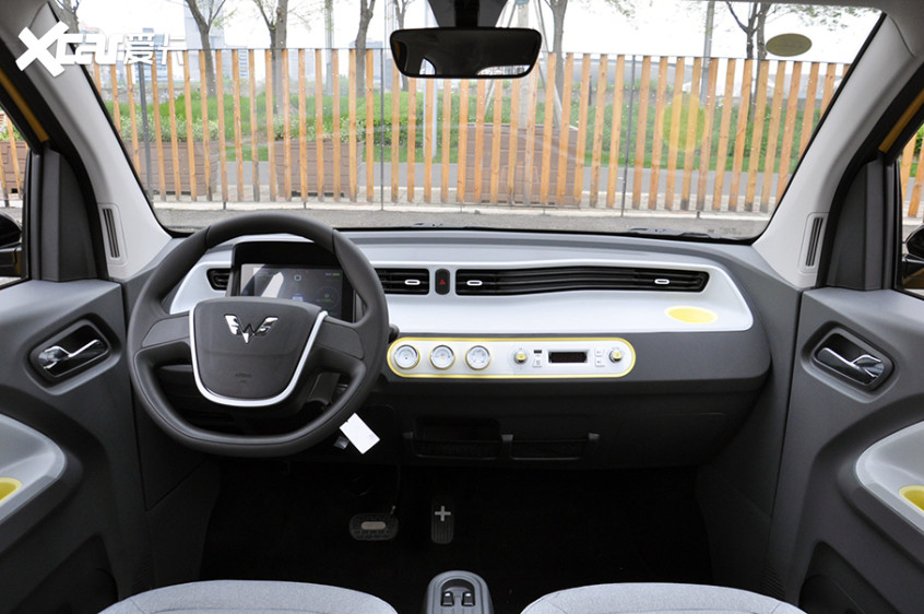 来到内饰部分,宏光MINIEV马卡龙基本延续了宏光MINIEV的中控台造型,不过细节部分的调整以及全新配色的加入带来了不错的感官,内饰细节之处的点缀与车身颜色一致,呈现出更多青春活力。宏光MINIEV马卡龙中控面板除了采用白色与黄色的色彩搭配外,按键还改为了汉字注释,更为清晰与直观。新增的蓝牙设备支持选装“智能语音收放机”,可提供语音交互、语音导航等功能。