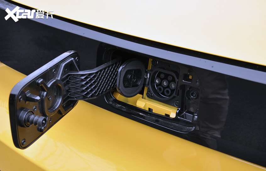 车标盖板背后为慢充接口,充电功率小于2kW,120km续航版本充电时长为6小时,170km续航版本为9小时。随车附送的充电枪使宏光MINIEV马卡龙直接使用家庭接地线的220V三孔插座即可进行充电。