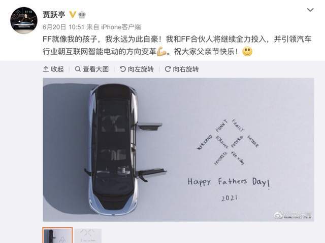 值得注意的是,从2017年到2020年,FF自发布首款产品 FF 91以来,预订的数量已经超过了6万,但是令人不解的是交付时间屡屡变更,至今没有交付哪怕一辆汽车,因此也受到了很多的质疑和非议。今年的父亲节,贾跃亭发了一条微博,内容让人看了异常感动,大体意思为:FF像是他的孩子,他会永远为此感到自豪,在今后的日子里,他会和合伙人继续全身心的投入,并希望能够引领整个汽车行业朝着互联网智能电动这个方向进行变革”,作为贾跃亭翻身的最后筹码,贾老板在上面倾注的心血可想而知。