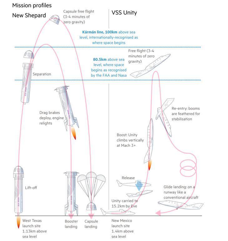 维珍银河与蓝色起源飞船对比