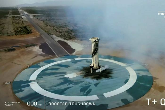 新谢泼德号可重复使用火箭降落在美国得克萨斯州范霍恩附近