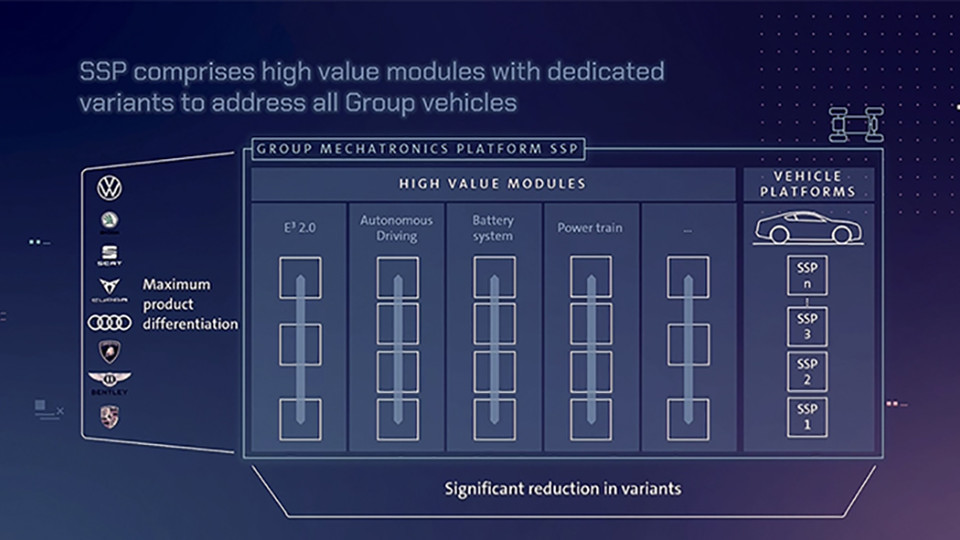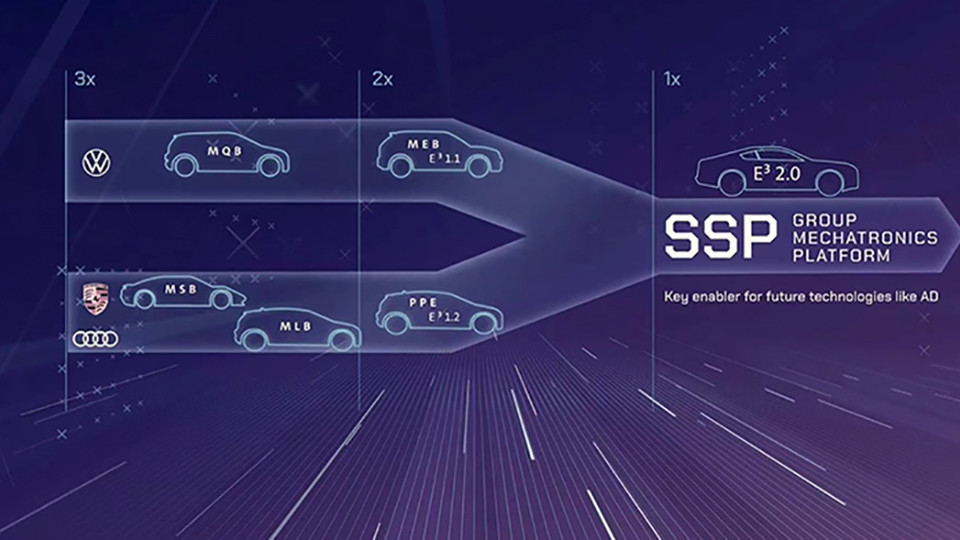 要说平台化、标准化,大众集团可是圈内的老玩家了。而为了整合旗下多品牌的规模效应,大众还将推广新的可扩展系统平台(SSP平台)。该平台预计将是MQB、MSB、MLB、MEB以及PPE平台的综合延伸。我们也可以看到,以上5个平台,其实分别涵盖燃油车和纯电动车。而大众就是希望能够整合出一个适用于旗下所有品牌和所有级别车型(乘用车、轻型商用车、部分卡车等)的机电一体化平台。