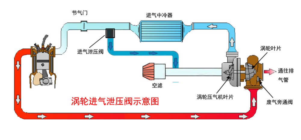 进气泄压阀:把进气管里的高压空气排出去