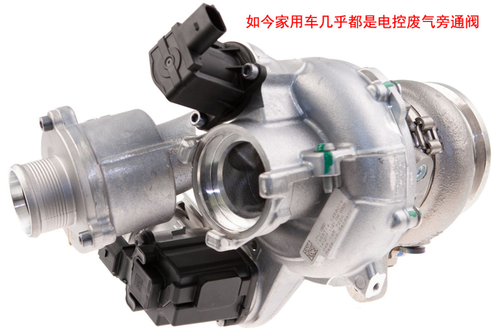 而如今的涡轮增压发动机控制就更加精确和细微了,废气旁通阀不仅可以控制增压压力,还可以实现更多的功能。比如在不需要太大动力的时候旁通阀打开,废气不推动涡轮,这时候发动机就是一台普通的自然吸气发动机,以自吸的状态运行,可以降低发动机机械负荷,还可以降低油耗。比如你轻踩油门起步时增压器是不工作的,但是当你猛踩油门时废气旁通阀就会瞬间关闭,让废气驱动涡轮,开始增压提升动力。