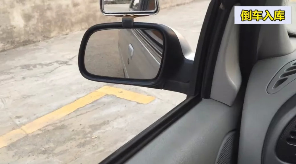 当左后视镜的下沿线和左出库线重合时,就可以停车了。这些点都可以提前做准备的,因为提前准备还可以做调整,过了点之后再调整就比较费劲了。