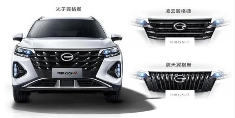 新款传祺GS4外观方面有着明显的变化,新车采用了传祺家族最新的凌云翼3.0设计理念,外观造型更加年轻化。具体来看,新车前脸部分配备了大尺寸的倒梯形中网,中网内部由现款的条幅式变换为点阵式,让整个前脸更加向外延展。新车左右两侧上扬式的前大灯组与中网进行衔接,同时底部还配备有三段式的进气口,让整个车型显得更为运动时尚。值得注意的是,新车还提供有三种不同的格栅造型。