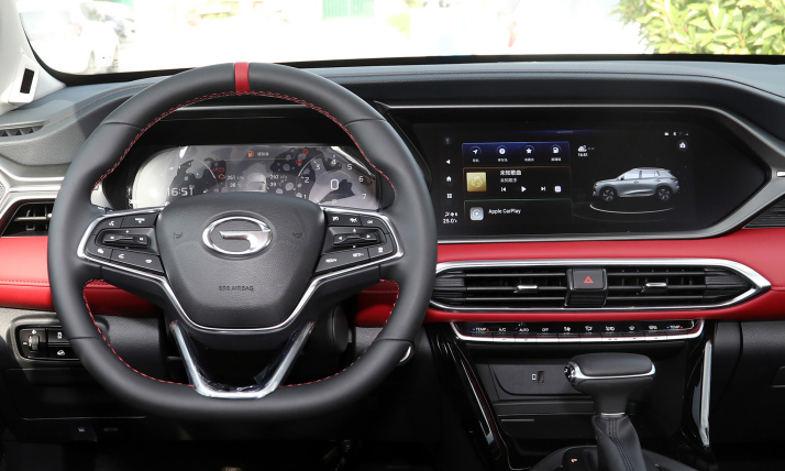 新款传祺GS4内饰变化幅度较大,其中新车在中控台上方配备了双12.3英寸的屏幕,视觉上具有大连屏效果,坐进车内的第一时间便会被屏幕所吸引。同时新款车型采用了传祺官方称之为“双X”的主题仪表台设计,中控区域配备高亮镀铬饰条,并在主副驾驶区域呈现出X造型,在搭配上隐藏式的机械空调出风口以及丰富的软性材质应用,进一步提升了内饰的整体质感。