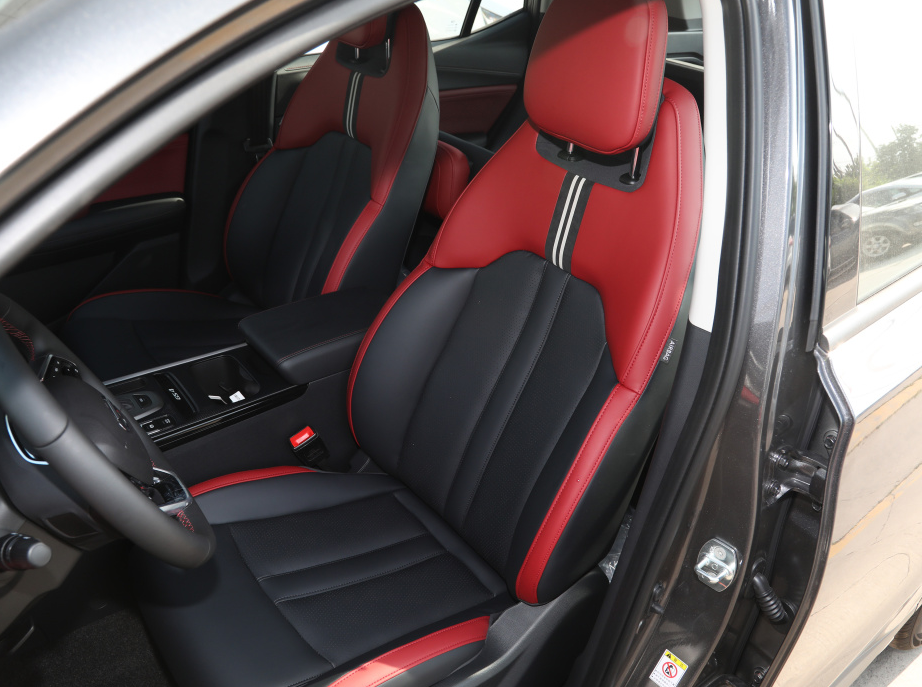 根据配置不同,新款车型的车内座椅分别采用了织物材质和仿皮材质进行包裹,其中新款车型的车内前排座椅内部填充物较为厚实,靠背以及坐垫两侧护翼稍有突出,细节之处还采用红色缝线作为装饰,质感表现出色同时乘坐时具有不错的舒适性。功能方面,新款车型提供有主驾驶座椅电动调节,驾驶位座椅加热等。