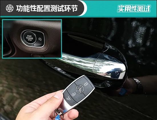 测试车四个车门均配备了感应式无钥匙进入功能,触控车门拉手后侧的方形凹槽即可完成落锁,而解锁时则仅需要握住车门拉手即可,使用十分方便。测试过程中,车辆解锁及落锁过程十分顺畅,并没有出现失灵或是卡顿的情况。