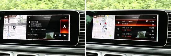 12.3英寸液晶仪表能够同步显示导航信息,而且支持多种模式可选。不过就实测来看,奔驰GLE的这项功能略显鸡肋,毕竟液晶仪表与中控屏相连,显示相同的地图内容未免有些多余。当然,HUD抬头显示功能还是非常实用的,而且其也能够显示导航信息,使驾驶员不用低头即可查看重要的行车信息。