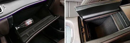 副驾驶前侧的手套箱容积很可观,能够放下不少杂物,并且绒布包裹的内衬也可以对物品进行保护,在行车过程能够有效避免磕碰。前排中央扶手采用对开门设计,内部容积较大,而且空间相当规整。内衬同样使用了绒布包裹,细节方面的处理十分贴心。
