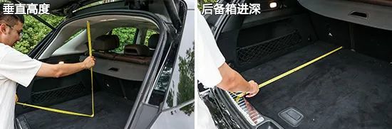 对于后备厢日常所需的基本数值,我们也进行了实测,开口的最大宽度为114cm;开口长度为97cm;后备厢地台与内部车顶的垂直高度为81cm;后备厢进深为102cm。