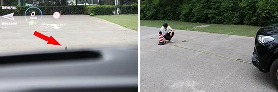 在测试前方视野阶段,我们采用高70cm的桩桶作为参照物,随后调整车距,直至在主驾驶位可以看到桩桶上沿。经过测试,桩桶与车头最终测得的数据为375cm,虽然数值偏高,但在测试过的同级别车型中,依然能够处于中游水平。