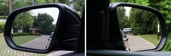 奔驰GLE两侧外后视镜均配备了双曲率镜面,因此视野观察范围比较大,最终测试结果为左侧28°,右侧23°,在测试过的同级别车型中处于上游水平。不过,由于镜片末端随着曲率的变化,畸变情况也会比较严重,因此在日常使用过程中仍需要谨慎驾驶。