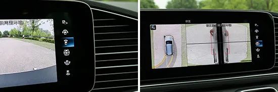 奔驰GLE配备了360度全景影像系统,影像画面清晰度较高,即便是在夜晚或光线条件不佳时,也能保证画面的清晰度,而且畸变情况也并不严重。此外,通过点击屏幕右侧的机位,还可以选择不同的镜头角度,以便更加全面细致的观察车辆周边情况。