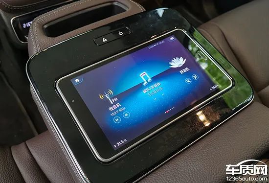 测试车为顶配版本,后排中央扶手前侧配备了一个多媒体控制系统,能够调节收音机、多媒体、天窗等功能。触控面板相当于一个平板电脑,与车辆采用无线方式连接。此外,平板电脑还可以取出使用,十分方便。
