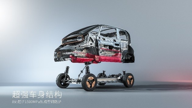 KiWi EV整车结构采用高占比高强钢材料,更有8处超过1500兆帕的高强度热成型钢材使用,覆盖左右侧车门及核心动力电池四周等关键位置。在前后排座舱设计上,KiWi EV前排全系标配正面双安全气囊,后排设置满足ISOFIX标准的儿童安全座椅固定系统。