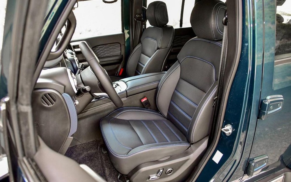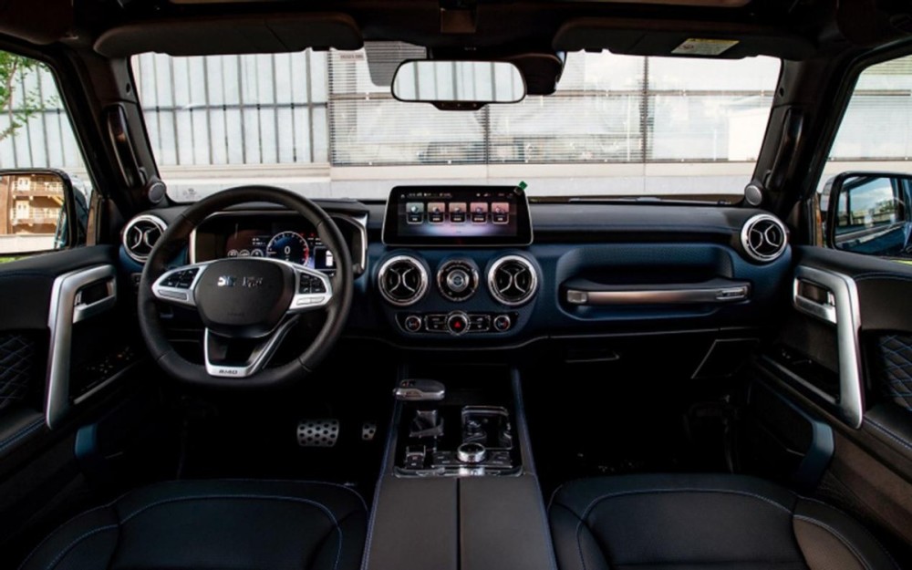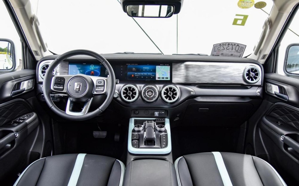 内饰设计有点模仿奔驰,但总体也是挺有设计感和科技感。细节方面的各种按钮、旋钮的质感也都不错,算是越野车里用料做工好的车型代表了。