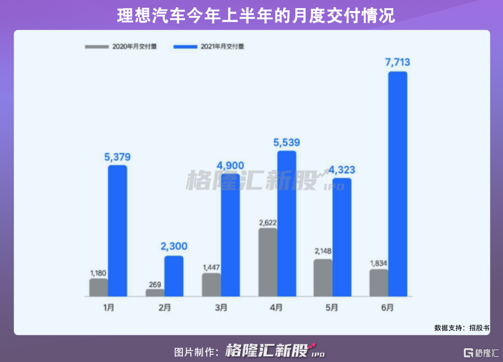 从产品上看,理想汽车只有一款六座中大型豪华电动SUV--理想ONE;销量上,2020年,理想卖出了32624辆,名列年度中国新能源汽车销量第六位,占市场份额2.8%,在仅生产新能源汽车的汽车制造商中排名第三。截至2021年6月30日,理想一共交付超过63000辆理想ONE。