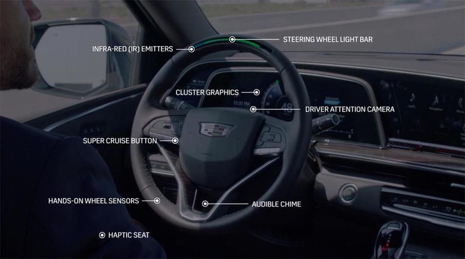 自 2017 年以来,通用汽车在特定市场应用了一项名为“超级巡航”的新功能。在美国、加拿大和中国的一些高速公路上通过激光扫描创建高精度地图数据后,进入该路段时无需双手即可驾驶。但是,由于驾驶员可以做其他事情,因此在车内安装了监控驾驶员眼睛的传感器。双手不握住方向盘是可以的,但让司机有责任留意前方的道路。