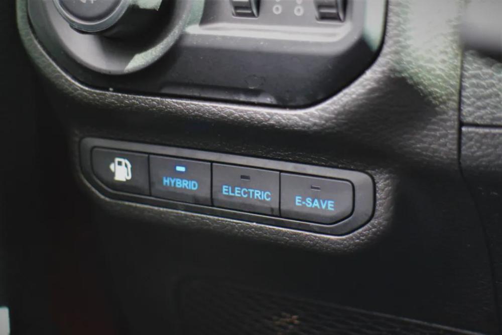 燃油版车型上原本是发动机启停按键的位置,在牧马人4xe上被一个蓝色的“最大力度动能回收”(Max Regeneration)按键代替,上山时消耗的电量,在下山时便可以被“回收”。再加上发动机也在随时将多余的能量转为电池的电量,让这台牧马人4xe没有“续航焦虑”。所以,你完全可以把它当燃油版牧马人一样正常驾驶,一切交给牧马人4xe自己来搞定就行。