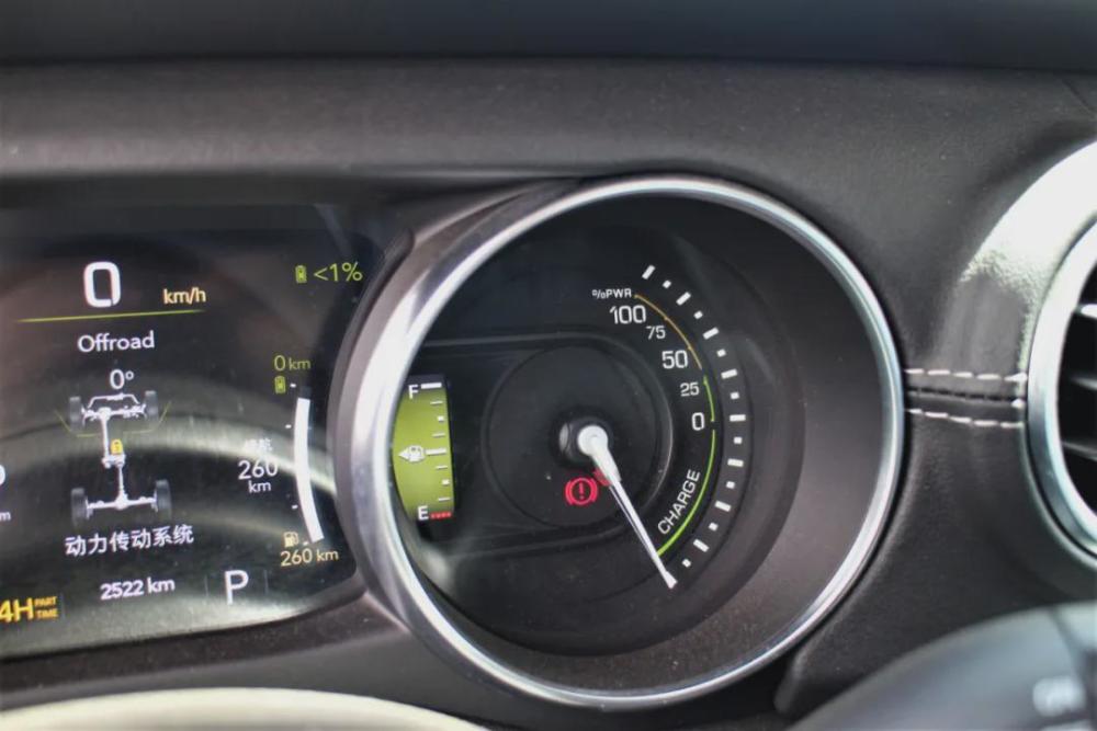千万不要被“插电混动”这词给带偏了,虽然是PHEV,但Jeep的工程师最了解牧马人4xe的用车场景,即便完全不充电,牧马人4xe也不会有任何问题。哪怕仪表上的电池电量<1%,也不用担心,电池里面仍保留了约10%的电量冗余,为的就是在需要大扭矩时,电动机能发挥出其应有的优势。