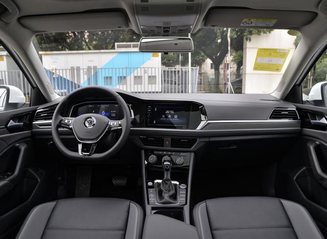 跟其它大众车型一样,大众速腾也采用了经典的家族式内饰设计风格。整个中控台的造型特别简洁,实体按键的造型也很简单,再加上小巧的换挡把、经典的三幅式平底方向盘,虽然缺乏一定的个性度,但是用起来还是很顺手。值得一提的是,该车全系标配8英寸的液晶仪表盘(高配为10.3英寸),科技感还是比较足。如果内饰能够再多用一点软质材料,整体的档次感应该会更高。