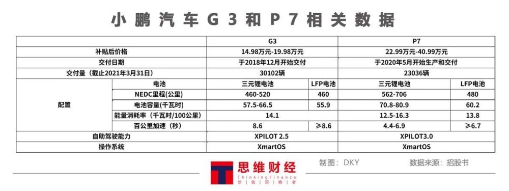 表——小鹏汽车G3和P7相关数据 来源:招股书
