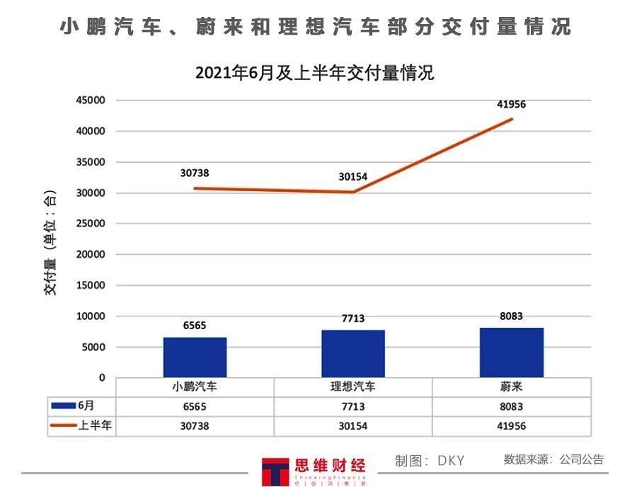 图——小鹏汽车、蔚来和理想汽车部分交付量情况 来源:公司公告