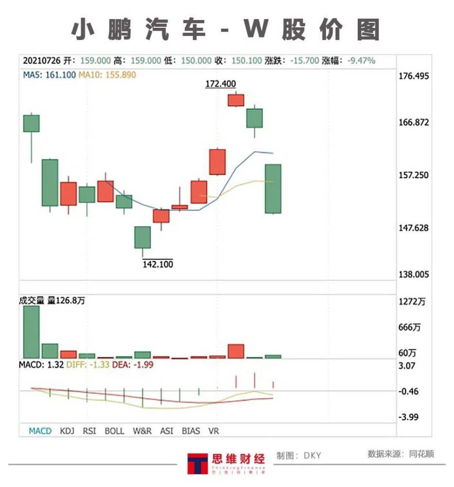 在香港成功IPO之后,小鹏汽车的发行价为165港元,以高于发行价的168港元开盘,截至7月26日,小鹏汽车以150.1港元收盘。