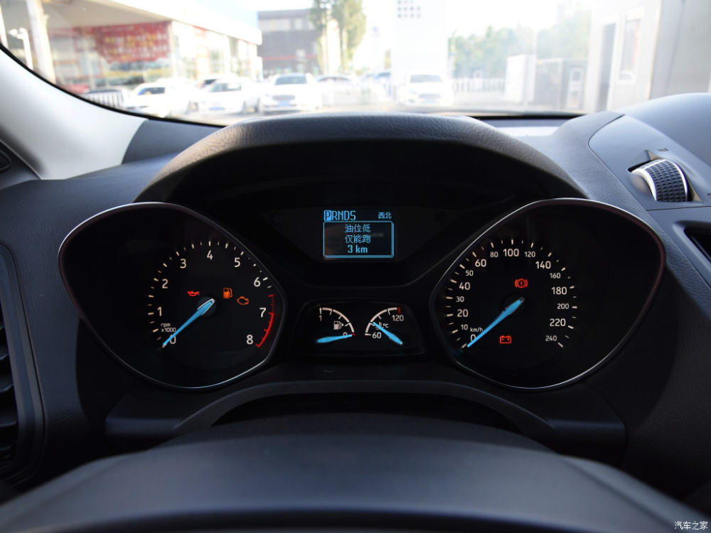 多功能方向盘为三辐样式设计,中高配车型外部包裹的真皮面料和内部填充物都比较柔软,配合两端带有明显的凹陷造型,握感相当舒适。由两个不规则图形组成的“双炮筒”仪表盘,具有很强的视觉冲击,转速、车速、水温和油量表上的冰河蓝色指针显示尤为清晰,横向放置的行车电脑显示屏驾驶时查看各项数值非常方便。
