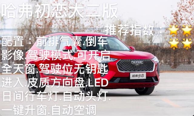 哈弗初恋中共有6款车型,其中小编点评了四款,个人比较推荐大四版,大四版相比于大三版所能得到的配置非常丰富,并且都是实用型配置,其次就是大二版,相比于大一增加了气囊的配置,这也是其所推荐的原因。最不推荐的是入门级。以上就是本期的车型导购。