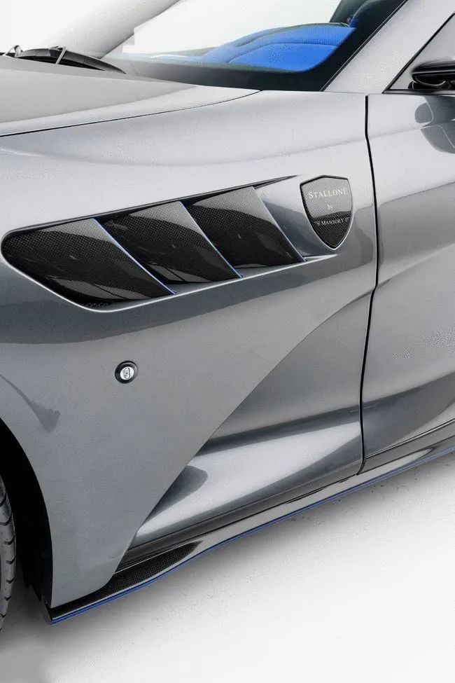 在812 GTS Stallone之上,迈莎锐选用了大量碳纤维套件,诸如前保险杠、翼子板及鲨鱼鳃进气口以及重新设计的中网等,以此来尽可能的减轻车重提升车辆性能,但不同于其他改装品牌的“单向思考”,迈莎锐在保证车辆性能的同时,也在“美学”角度下足功夫,使得升级调整之后的812 GTS Stallone的呈现另一种不同的气质,这也是迈莎锐之所以获得众多车友喜爱的一个重要原因。