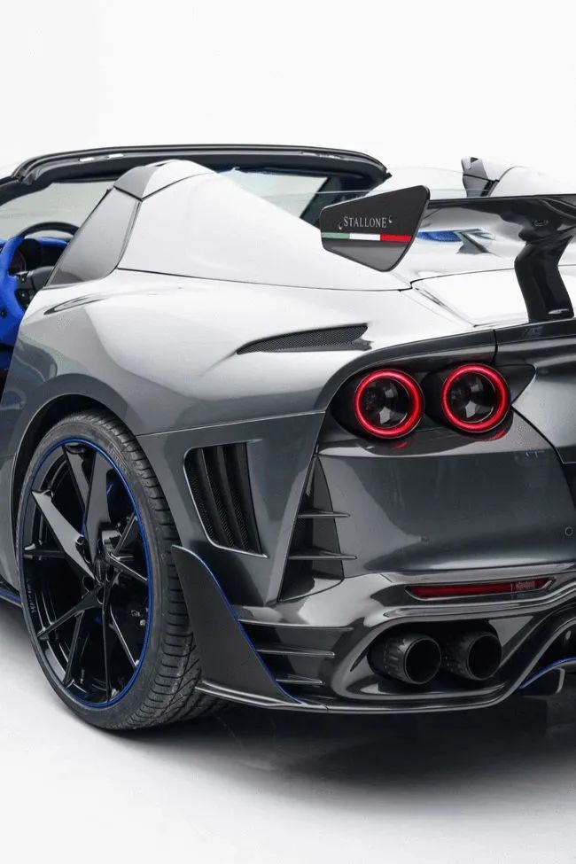 那么,是否能让法拉利812 GTS变得个性一些呢?答案是肯定的,今年年初,世界著名定制改装品牌MANSORY迈莎锐推出了针对812 GTS的改装作品,一如MANSORY迈莎锐的其他作品一样,这款被精良改装的力作同样有了MANSORY迈莎锐版的名字——812 GTS Stallone,Stallone在英文中译作史泰龙(出演洛基、第一滴血的硬汉),而在意大利语中则译作种马,虽然柿同学不太明确迈莎锐的最终用意,但是,不管是英语和意大利语,其最终传达的都有“强悍”的意思,不是吗?