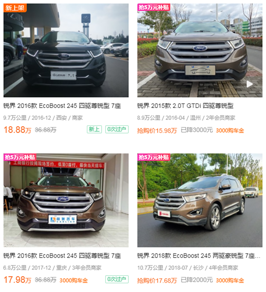汉兰达保值率太高难以下手?福特锐界的售价就要实惠不少。锐界的新车指导价为32万左右,3年车龄的锐界大概在15-17万元。要知道这款车在当年可是对标丰田汉兰达,三排空间能够正常乘坐成年人,具有不错的实用性。