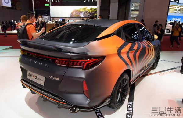 侧面采用下倾式腰线设计的同时搭配掀背设计,搭配Y字造型的轮圈,进一步增强其运动属性。车尾部分层次感更鲜明,车尾增加后扰流板,同时还采用时下流行的贯穿式尾灯造型,进一步提升尾部的视觉宽度。同时,车尾线条凹凸有致也进一步增强尾部的精致感,排气部分则采用单边单出的造型。