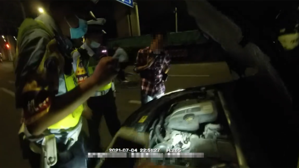 10点52分,车流中突然传来“轰轰”响声,浑厚又张扬,这声音王警官听着很是熟悉。很快,一辆粤C2××0N号黑色名爵小车沿人民路东往西方向驶近岗点,他立即示意小车靠边停下。▼